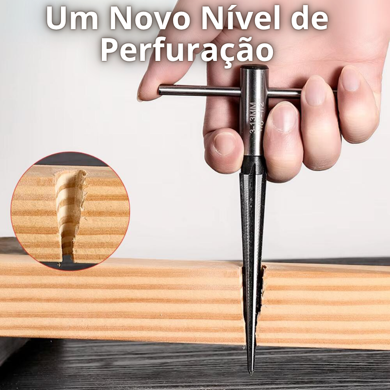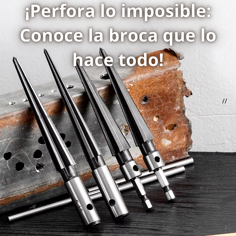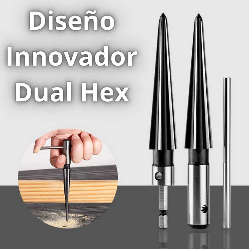Fabricado en acero de alta resistencia, este escariador cónico te permite trabajar en metal, madera y plástico con resultados limpios y rápidos